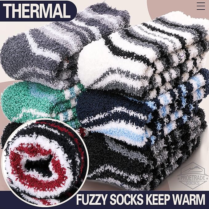 Microfiber lining [ANTI SKID& HIGH ELASTIC ] This warm fuzzy socks designed with slip resistant grippers and high elastic microfiber fabric. The grip sole prevents you from falling while moving,and the high ealstic fabic with soft touching make your feet more comfortable. [SOFT & FUZZY & COZY ] The anti slip slipper socks is blend of high quality materials, super soft coral velvet inner design, It's very soft, comfortable and breathable, no itching issue. They are great gift and perfect socks for womens and mens. [SIZE ] These anti slip fuzzy socks come is a standard US SIZE ,suitable for men’s shoe sizes 6 - 11/ women’s shoe sizes 6-12, so everyone can enjoy these non skid warm socks. [FIT MANY OCCASIONS] This fuzzy grips socks are suitable for many situation, you can wear them as cabin socks, sleeping socks, home socks, Christmas socks, slipper socks, thermal socks, microfiber socks, house socks, cozy socks,fleece lined socks in cold seasons. [BEST GIFT CHOICE] This fluffy fuzzy socks will be a perfect present for christmas gift, white elephant gift, birthday gift, gag gift, mother's day gift, christmas stocking stuffer, valentines day gift or halloween gift.